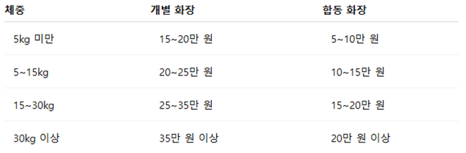 • 합동 화장: 여러 마리 함께 화장, 유골 수령 불가