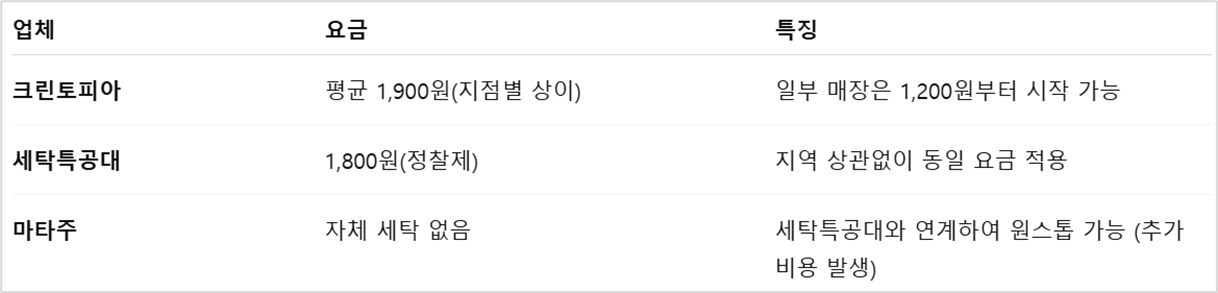 🔸 세탁 요금 비교 (와이셔츠 기준)