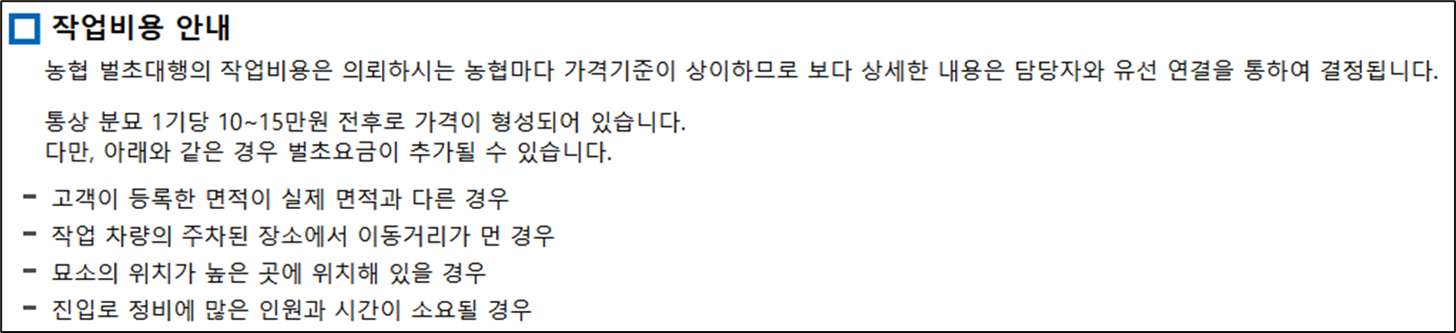- 추가 요청사항(예: 묘비 닦기, 주변 정리 등)은 꼭 신청 시 명확히 작성하세요. 기본 작업 외엔 요청 없으면 진행하지 않습니다.