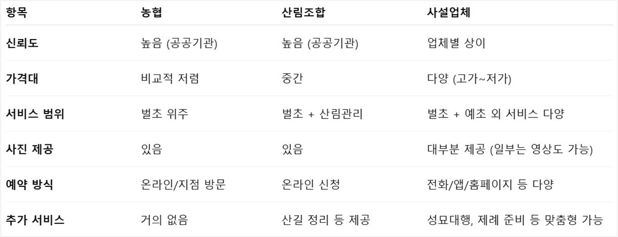 농협: 공신력 있고 저렴, 단순 벌초만 원할 때 적합