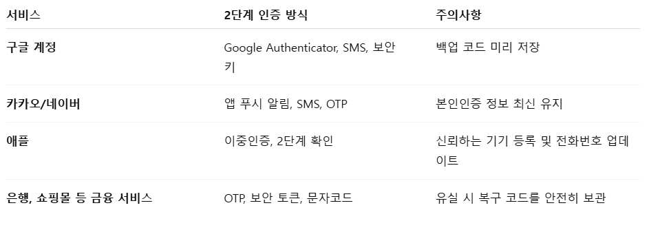 - 백업 코드, 인증 앱 등 추가 보안 수단은 항상 준비