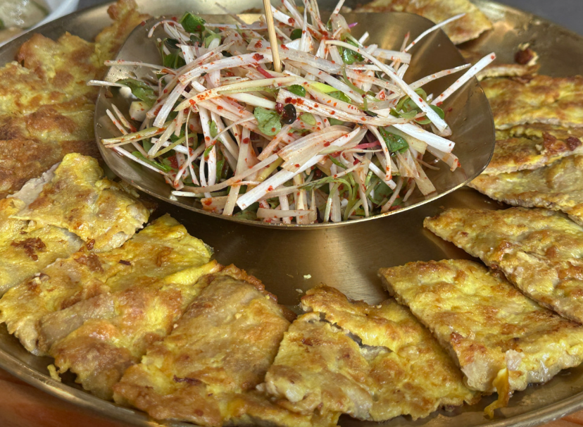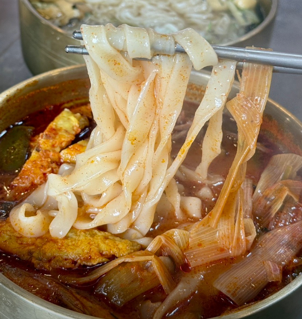여기에 마지막으로 얹히는 고명이 바로 육전인데요. 촉촉하게 부쳐낸 육전이 얼큰한 국물 위에 올라가면서 국물, 면발, 고명의 삼박자가 완벽하게 어우러집니다. 흔히 맛보기 힘든 조합이라 방문객들에게 더욱 강렬한 인상을 남깁니다.