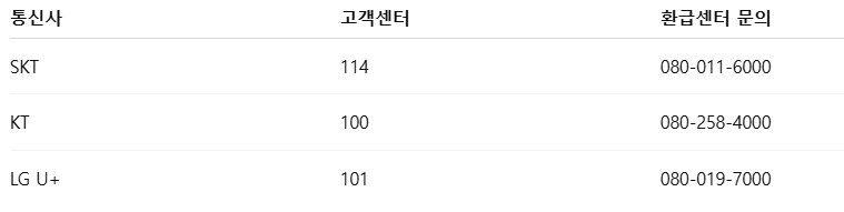 통신사별 환급센터 안내