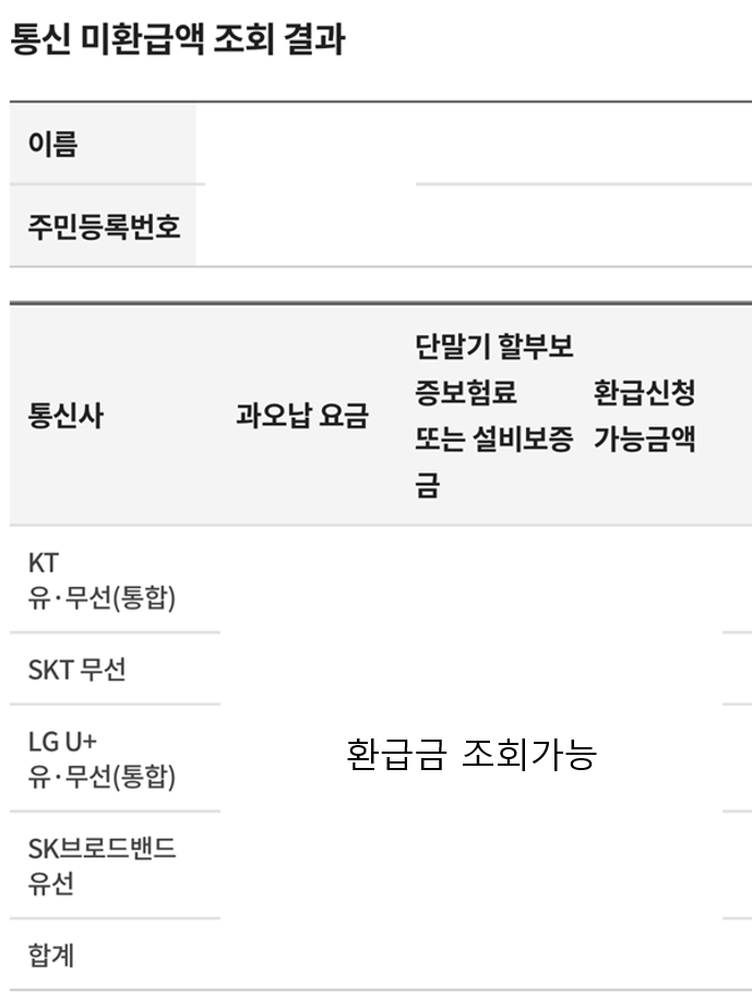 - 환급 대상 통신사, 금액 확인 가능