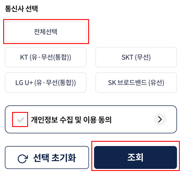 - 통신 3사 및 알뜰폰 가입자 모두 조회 가능