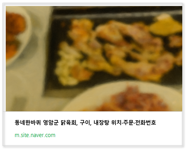 ▶동네한바퀴 영암군 닭육회, 구이, 내장탕 위치·주문·전화번호 위치·주문·전화번호◀