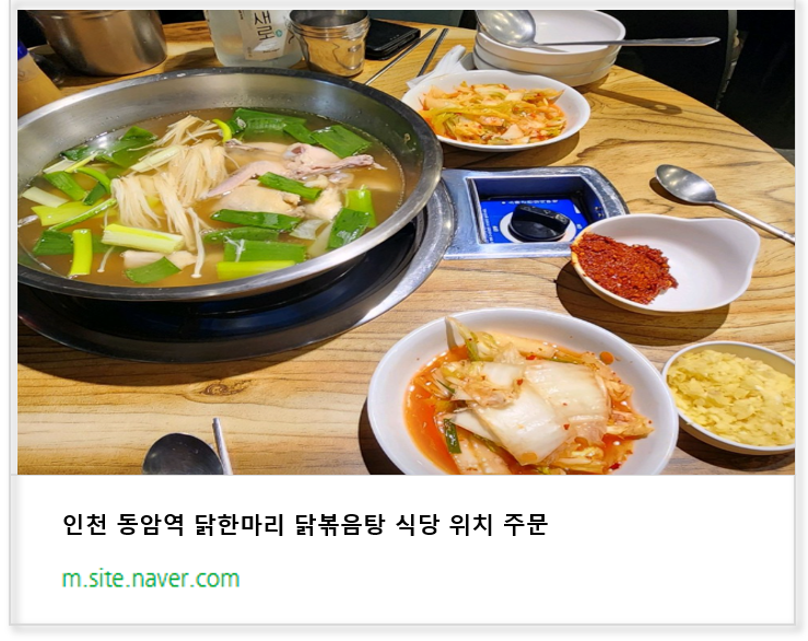 인천 동암역 닭한마리 닭볶음탕 식당 위치 주문