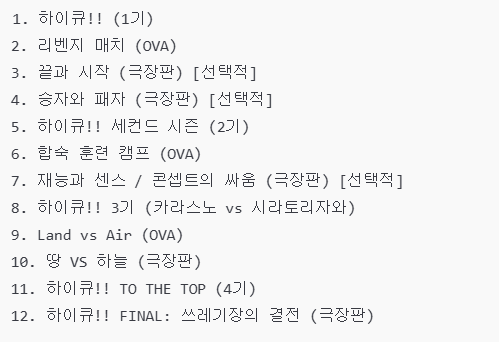 정리: 하이큐!! 최적의 시청 순서 (극장판 포함)