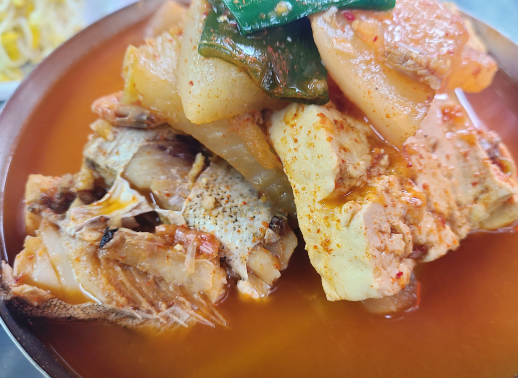 부드럽게 익은 동태살과 무, 두부가 어우러져 한 숟갈 뜨면 속이 확 풀리는 시원함이 특징이에요.