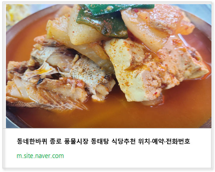 종로 풍물시장 동태탕 맛집 기본 정보
