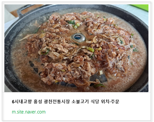 ▶ 6시내고향 홍성 광천전통시장 소불고기 식당 위치 보기 ◀