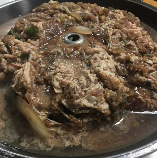 보통 팬형 불판이 아닌, 아래에는 육수가 끓고 위에서는 고기가 익는 이중 구조 불판을 사용합니다.