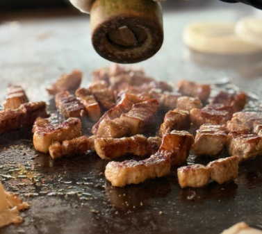 커다란 철판 위에서 불쇼와 함께 구워주니까 보는 재미+먹는 재미 모두 챙겨요.