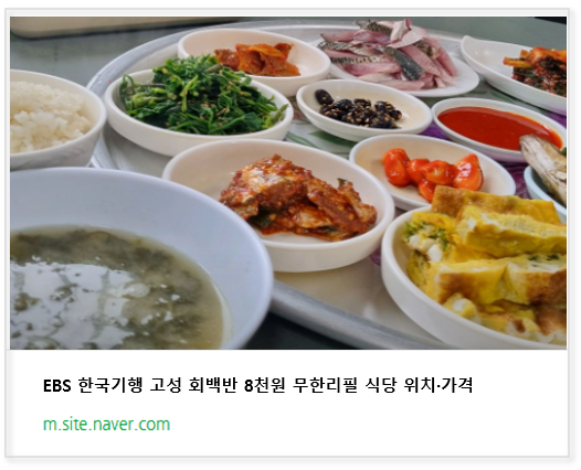 ▶EBS 한국기행 고성 회백반 8천원 무한리필 식당 위치·가격◀