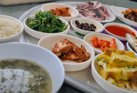 함께 나오는 밑반찬은 멸치볶음, 시금치나물, 호박전, 생선조림, 김치, 된장찌개 등 푸짐한 구성으로 한 끼가 든든하죠.