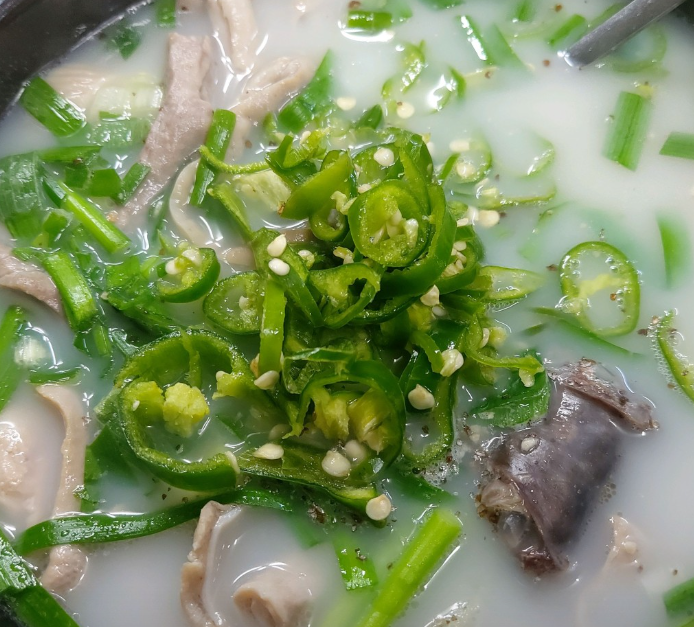 순대국은 국물이 뽀얗고 깊은 맛이 일품이에요.