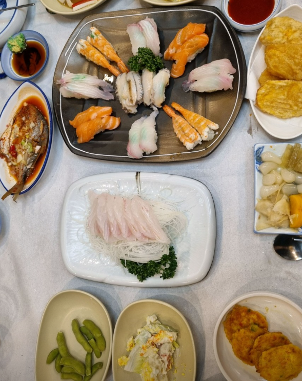 | 사시미 정식 | 약 35,000원 | 자완무시(계란찜), 활어 사시미, 회무침, 초밥, 튀김, 낙지연포탕, 생선구이 등 풀코스 |