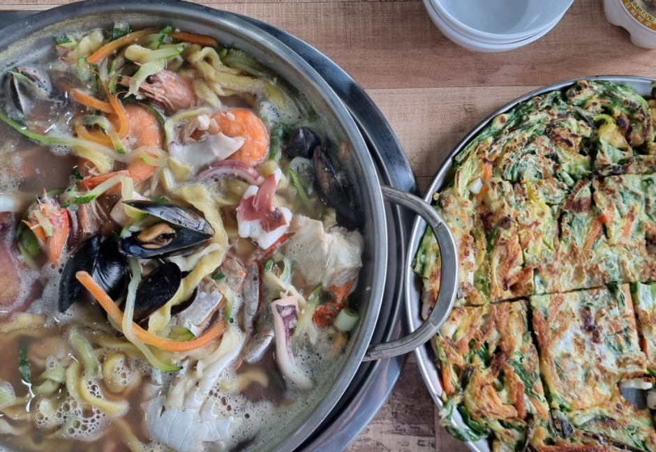 입안 가득 퍼지는 해물 향, 쫄깃한 면발, 구수한 보리밥까지. 그