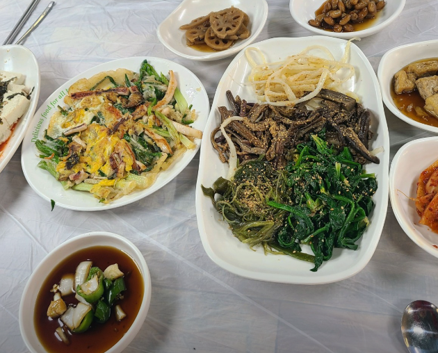 제가 갔을 땐 도라지무침, 열무김치, 애호박볶음 같은 소박한 찬이 함께 나왔어요.