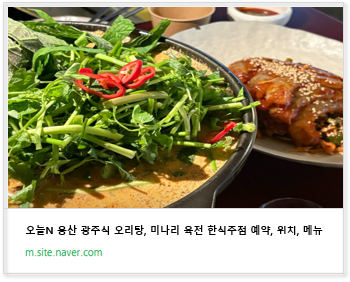 오늘N 퇴근후N 용산 광주 오리탕부터 미나리육전 숙성회까지 한식 맛집 예약·메뉴 정보 본문
