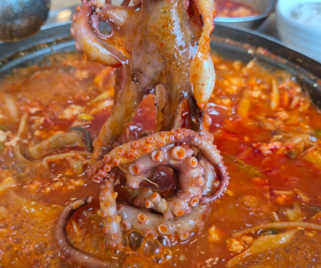 직접 만든 순두부와 탱글탱글한 낙지가 얼큰한 국물에 어우러져