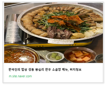 한국인의 밥상 성동 왕십리 한우 소곱창 맛집 직화 곱창 주문 위치정보 가이드