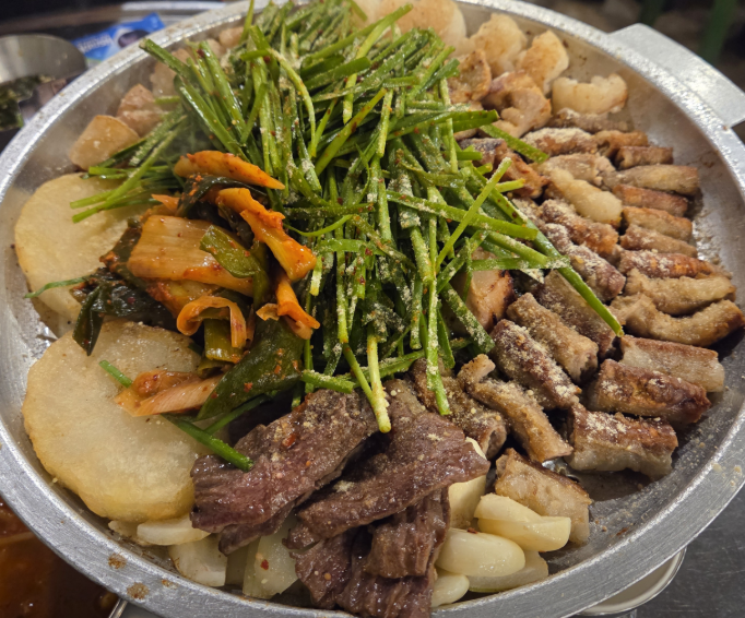 기본 메뉴는 모듬구이이며, 곱창·대창·염통이 풍성하게 나옵니다.