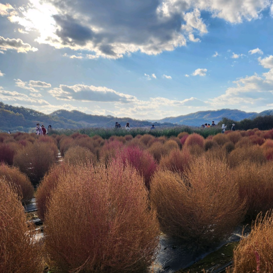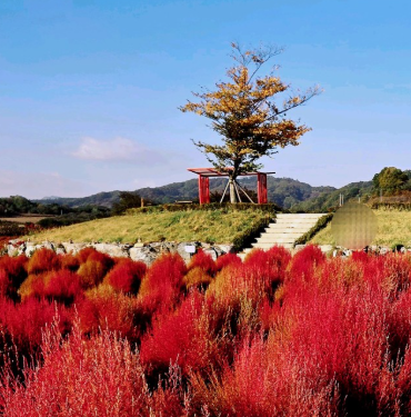 몽글몽글 붉게 변한 댑싸리들과 드넓은 정원이 어우러져요즘 사진 찍기 딱 좋은 타이밍입니다.