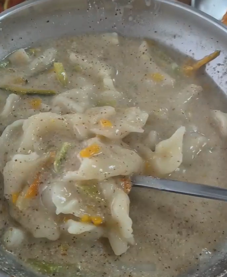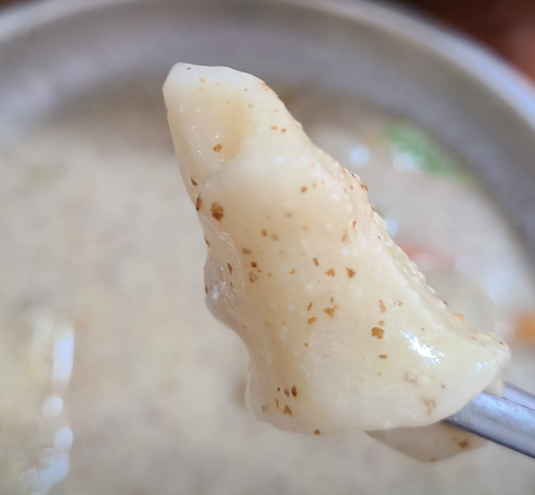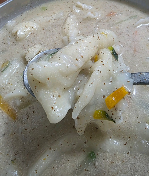 보들보들한 수제비 반죽에, 진하게 우러난 들깨 국물…