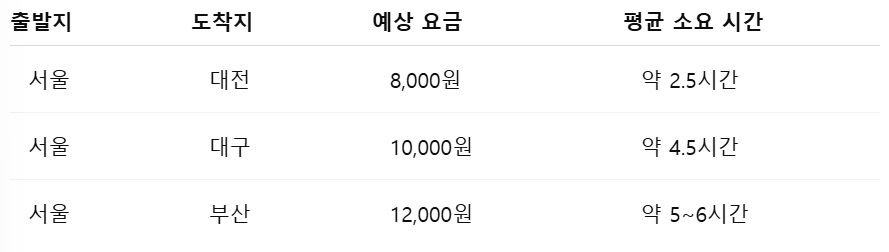 5. 고속버스퀵 요금 및 예상 소요 시간