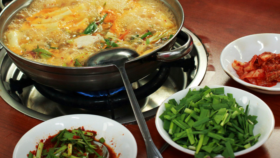 함께 끓인 감자, 파, 마늘이 더해져 깔끔한 맛을 내는데