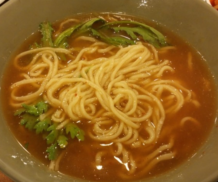 면은 소면보다는 약간 두툼하고, 국물은 짭조름하면서도 담백합니다.