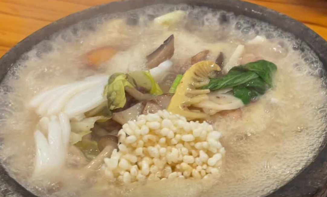 돌솥에 보글보글 끓는 소리와 향이 식욕을 자극해요.