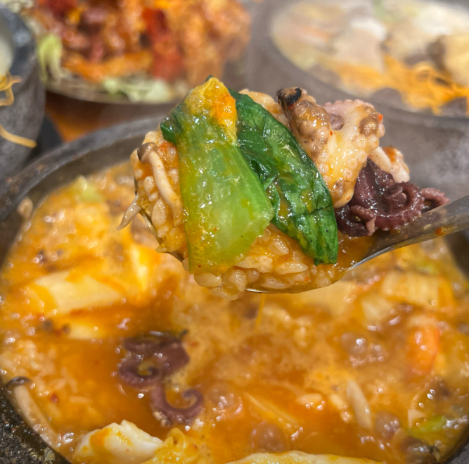 구수한 누룽지가 해물 국물과 어우러지며 입안 가득 고소한 풍미를 남겨요.