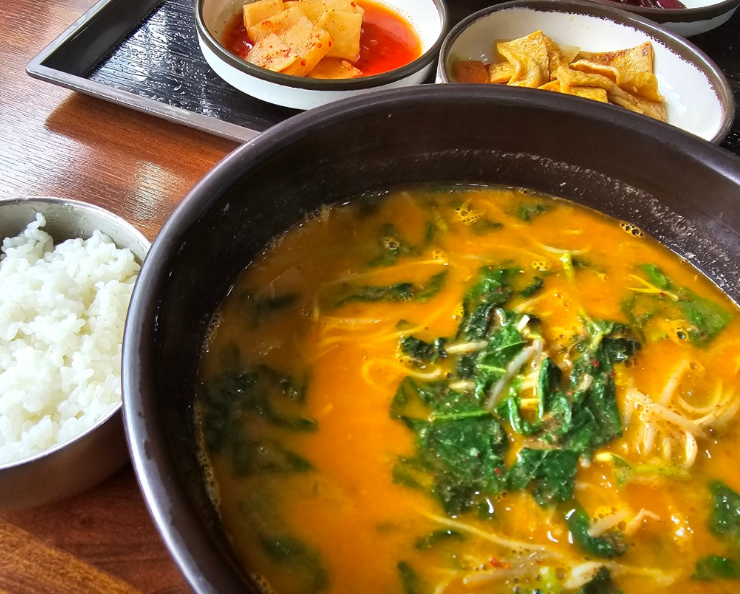들깨가루의 고소함과 직접 기른 단배추의 시원함이 어우러져 먹는 순간 속이 확 풀리는 느낌이에요.