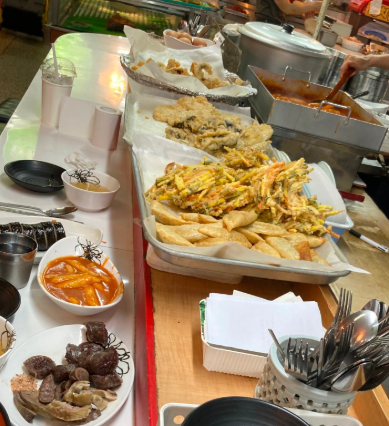 종류도 다양해서 고추튀김, 오징어, 김말이, 새우튀김 중 취향껏 고를 수 있어요.