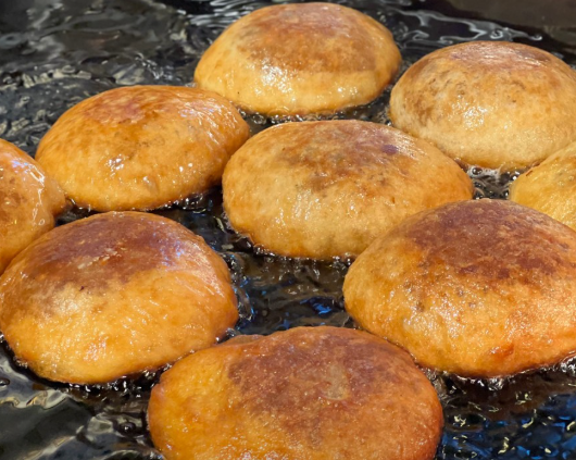 쭉쭉 늘어나는 비주얼에 손이 멈추지 않아요. 고추장 불고기 호떡은 매콤한 마니아들에게 인기 폭발!