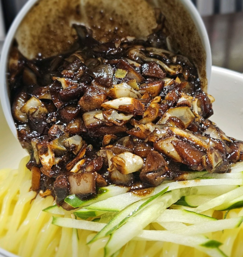 직화 불향이 입혀진 짙은 소스와 탱글한 면발이 따로 놀지 않아요.