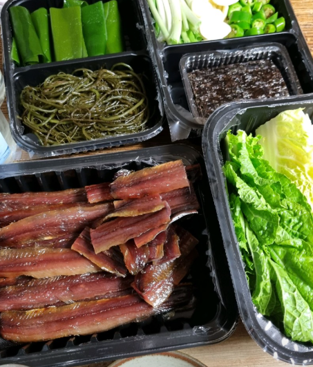 야채, 김, 마늘쫑까지 함께 곁들이면, 겨울밤 소주 한 잔이 절로 생각납니다.