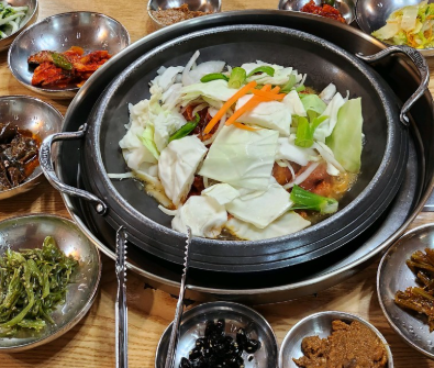 거기에 갓 지은 돌솥밥이 곁들여져서