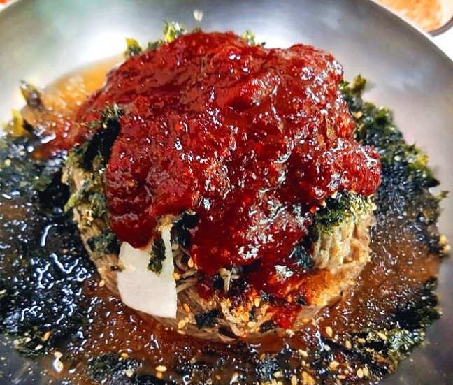 처음엔 비빔으로 즐기고, 중간에 육수를 부어 물막국수로 마무리하는 방식!