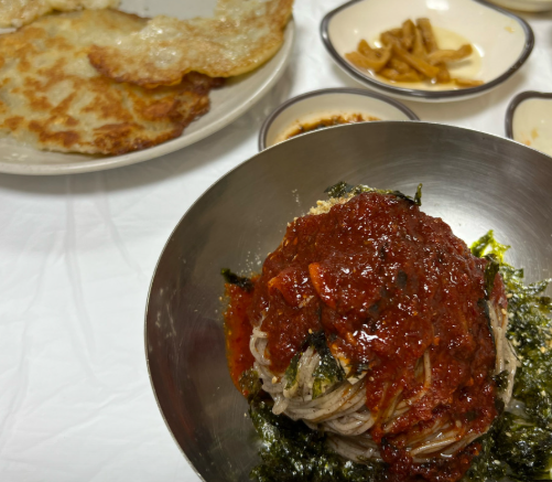비빔막국수 + 감자전 + 곰취수육 반 접시 조합이 베스트!
