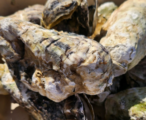 갓 잡은 굴과 해산물이 가득 쌓여 있어요.