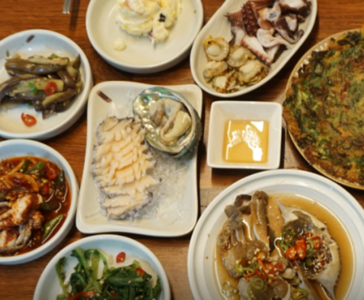 - 싱싱한 해산물 모둠 (굴, 멍게, 전복, 산낙지 등)