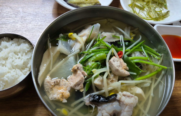 콩나물, 미나리, 미역 등 채소가 푸짐하게 들어가