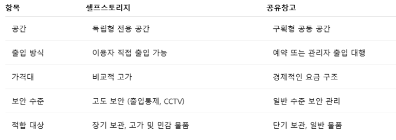 2. 셀프스토리지 vs 공유창고 – 차이점 한눈에 보기